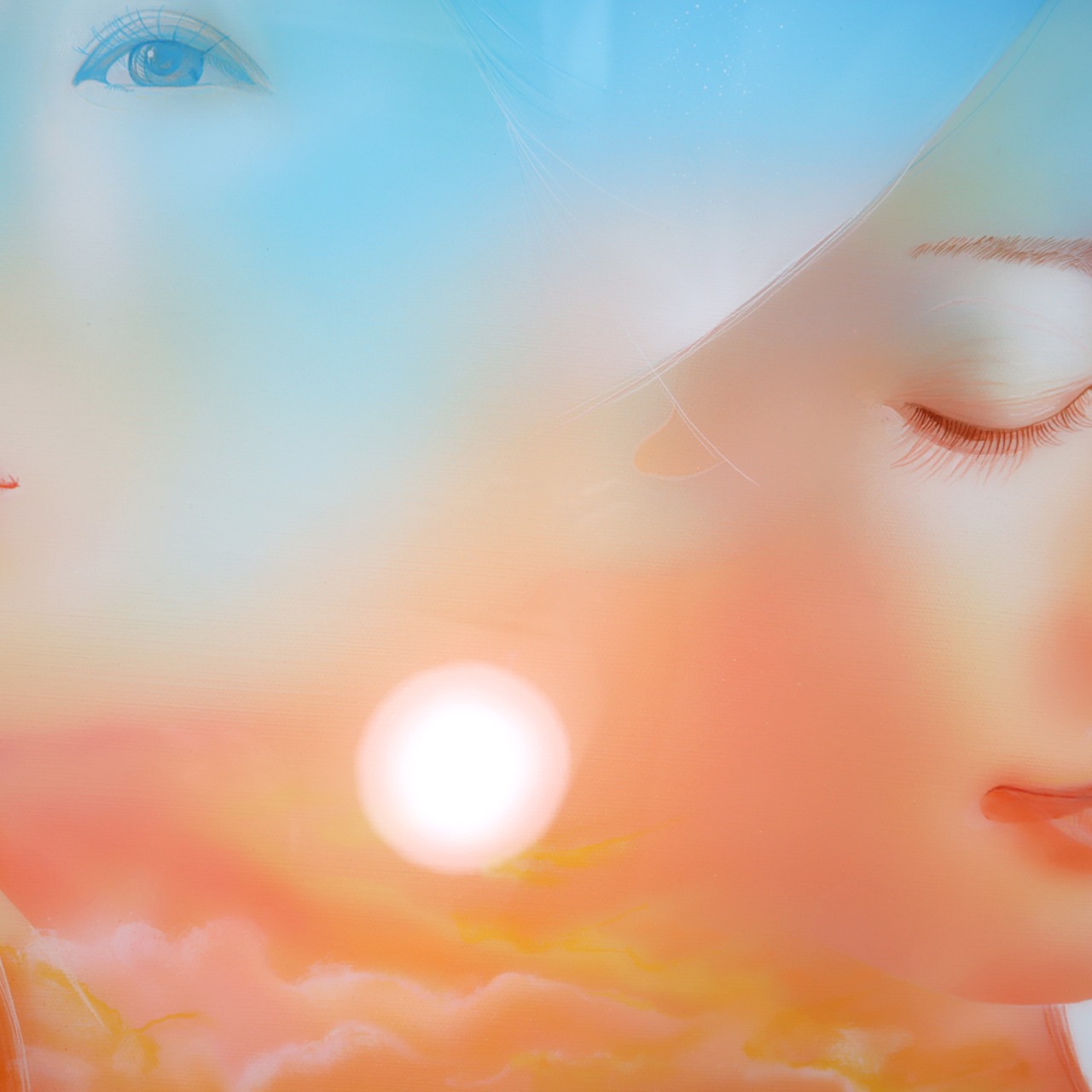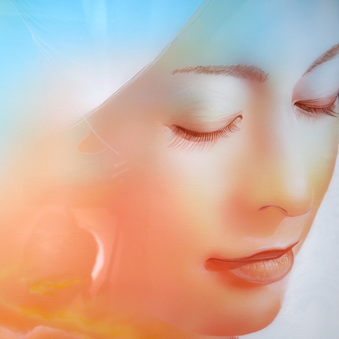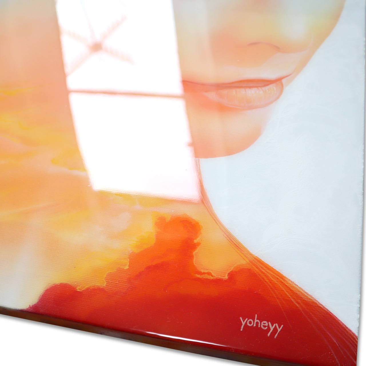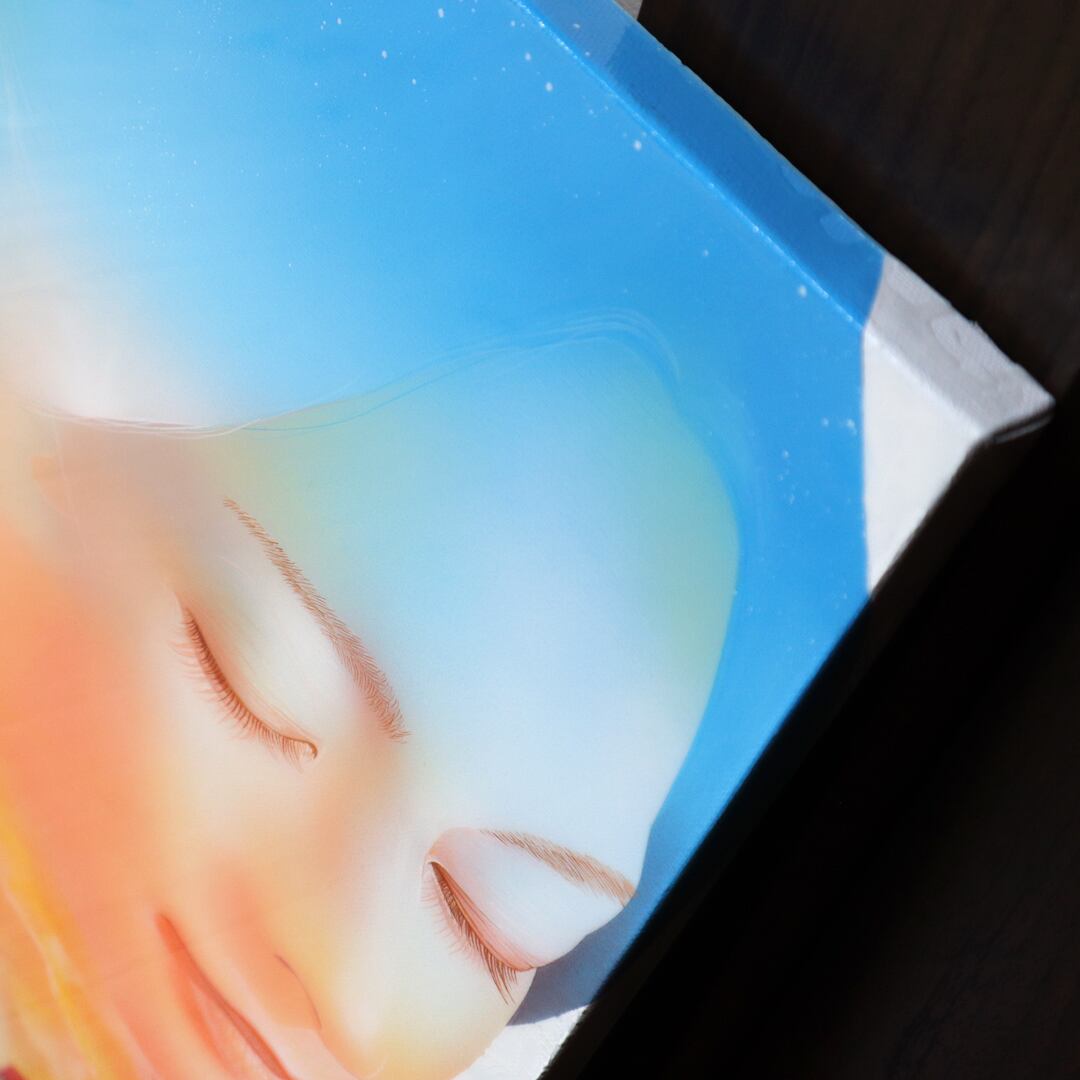 緻密な筆致で描かれた「想う」は、まるで写真のようなリアリズムを持つアート作品です。アクリル絵具とレジンを見事に融合させており、二人の女性が描かれているこの作品は、生命の源泉を象徴するモチーフとして深い美しさを放っています。光の加減によって変化する表情は、見る者に新たな発見をもたらし、心に残る特別な存在になることでしょう!